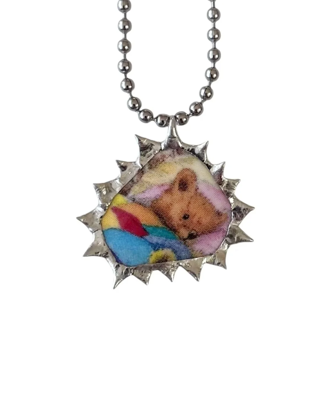 18 inch stainless steel ball chain which you can easily swap out for your favourite chain if preferred